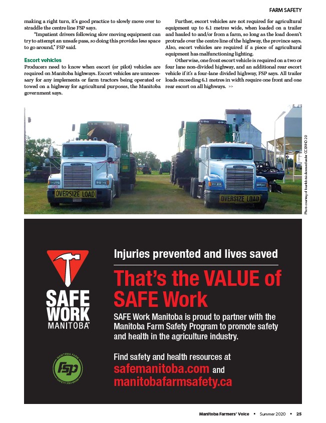required on Manitoba highways. Escort vehicles are unneces-sary