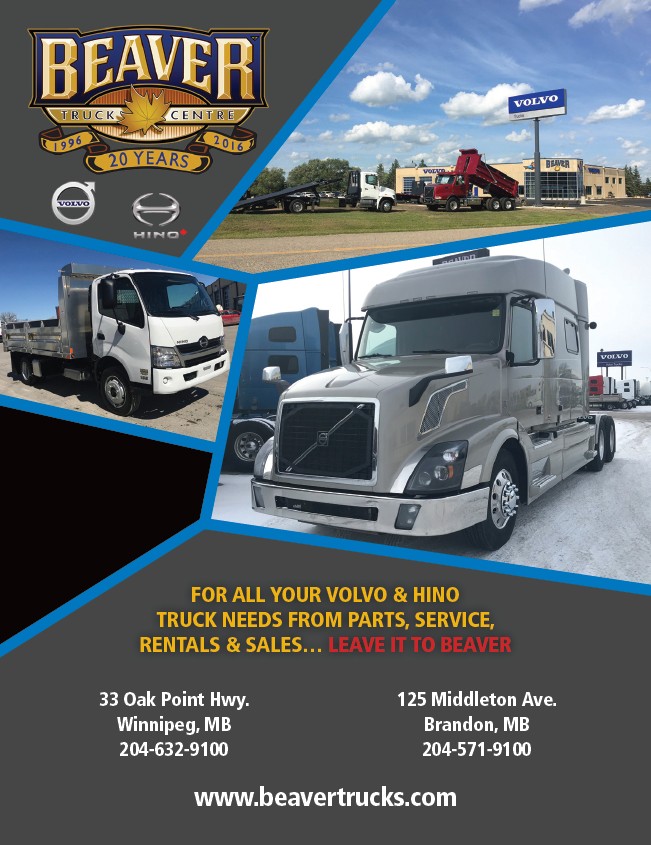 FOR ALL YOUR VOLVO & HINO TRUCK NEEDS FROM PARTS, SERVICE, RENTALS & SALES… LEAVE IT TO BEAVER 33 Oak Point Hwy. Winnipeg, MB 204-632-9100 125 Middleton Ave. Brandon, MB 204-571-9100 www.beavertrucks.com