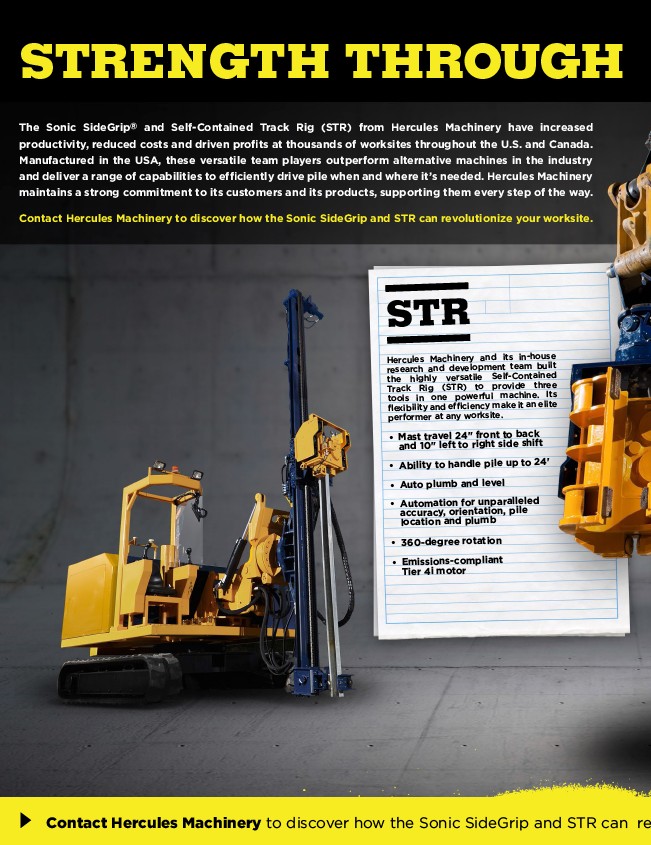 STRENGTH THROUGH The Sonic SideGrip® and Self-Contained Track Rig (STR) from Hercules Machinery have increased