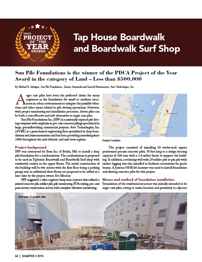 By Michael R. Jahnigen, Sun Pile Foundations, Swamy Avasarala and Santosh Mummaneni, Aver Technologies, Inc.