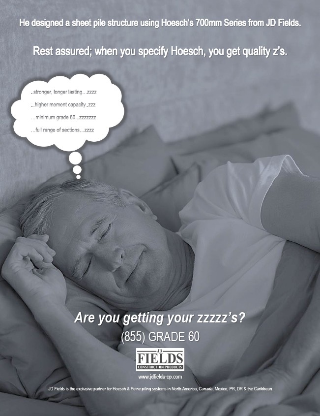 Are you getting your zzzzz’s? (855) GRADE 60 www.jdfields-cp.com JD Fields is the exclusive partner for Hoesch & Peine piling systems in North America, Canada, Mexico, PR, DR & the Caribbean
