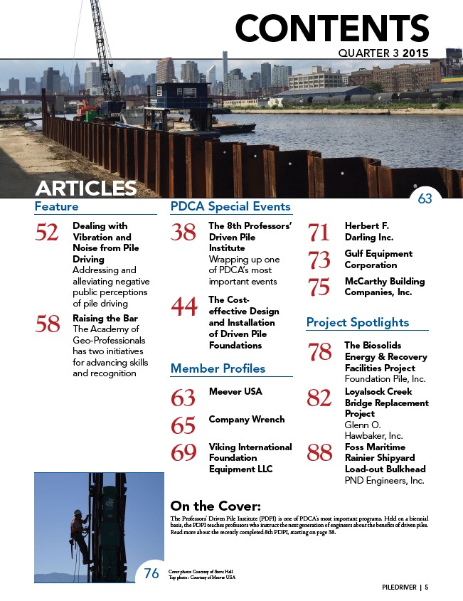 basis, the PDPI teaches professors who instruct the next generation of engineers about the benefits of driven piles.