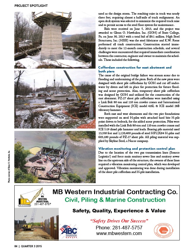 603,180 pounds of PZ-27 sheet pile. All piling material was supplied