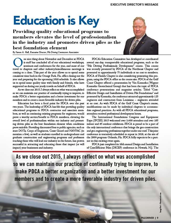 By Stevan A. Hall, Executive Director, Pile Driving Contractors Association