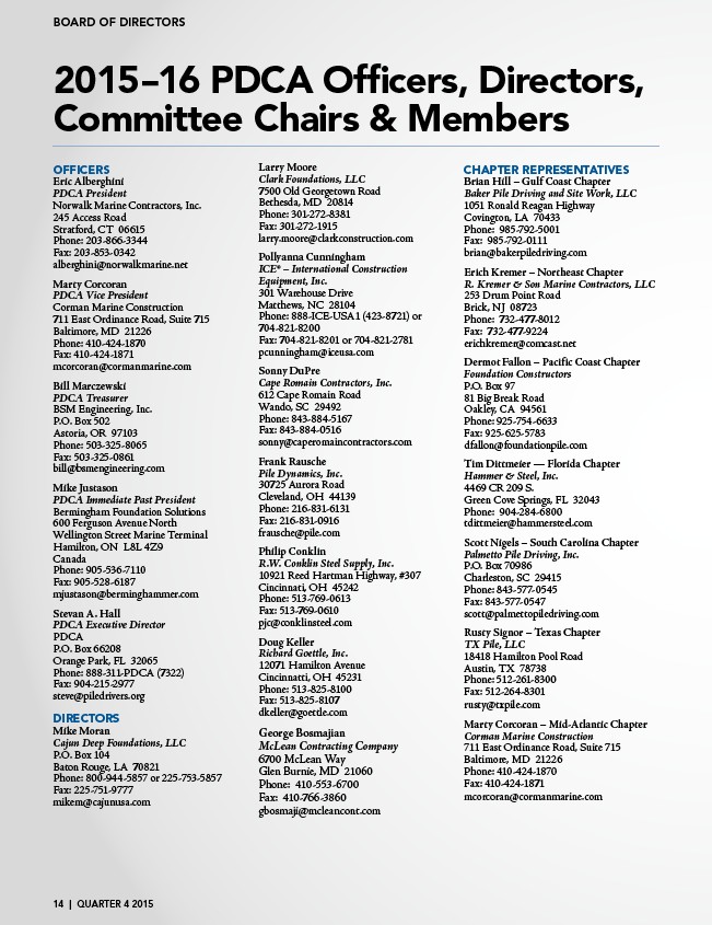 2015–16 PDCA Officers, Directors,