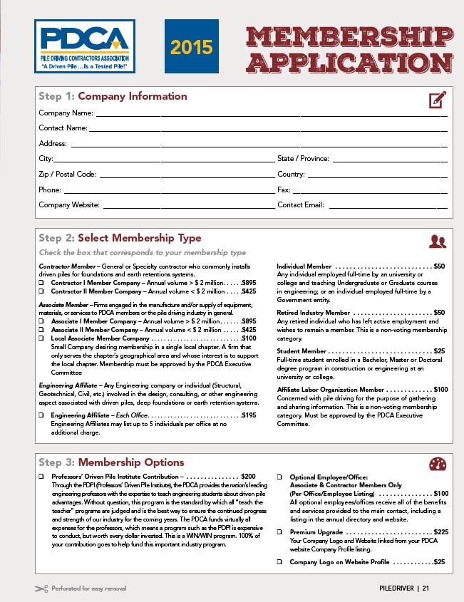 materials, or services to PDCA members or the pile driving industry in general.