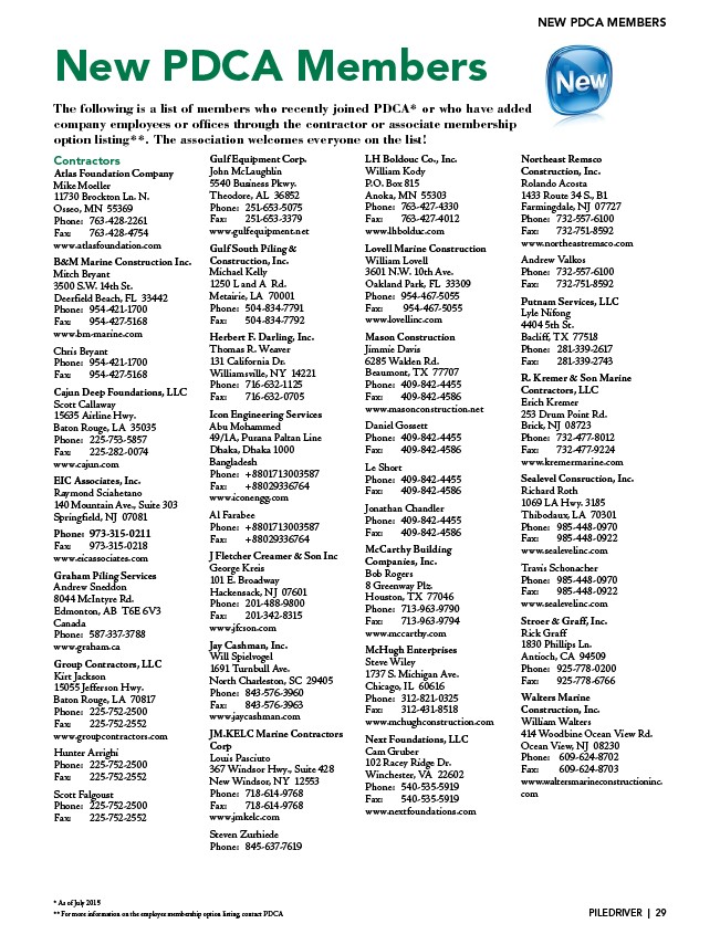 ** For more information on the employee membership option listing, contact PDCA PILEDRIVER | 29