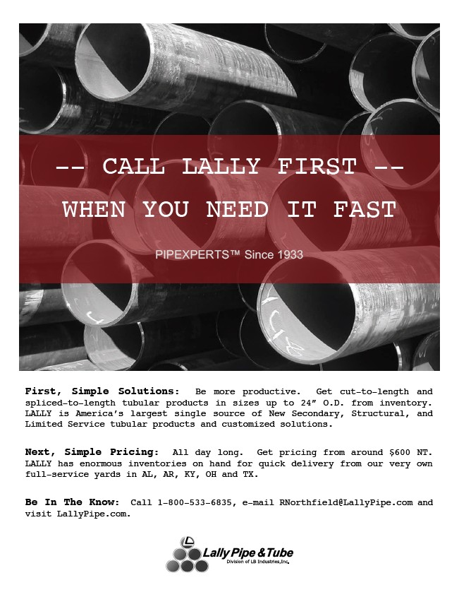 Be In The Know: Call 1-800-533-6835, e-mail RNorthfield@LallyPipe.com and