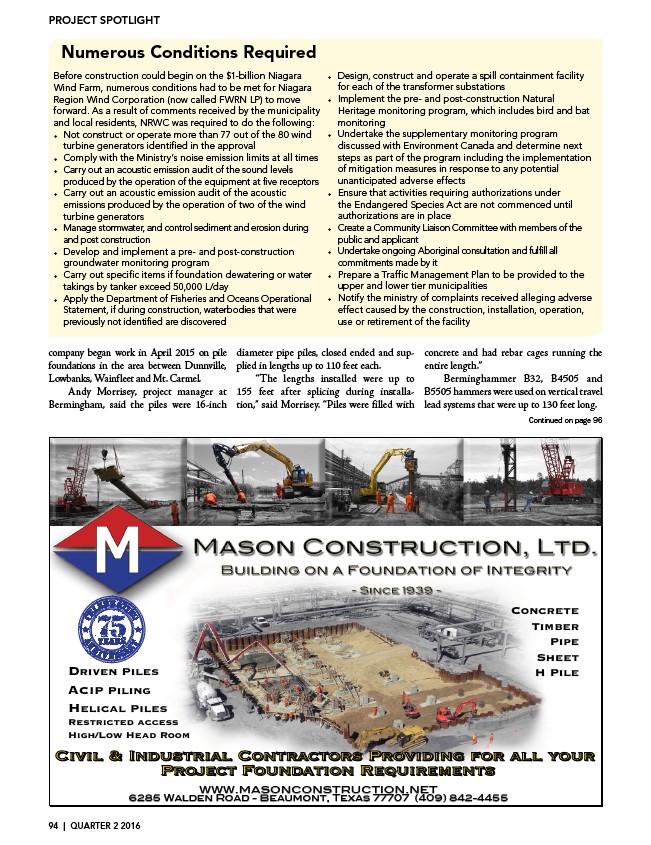 company began work in April 2015 on pile