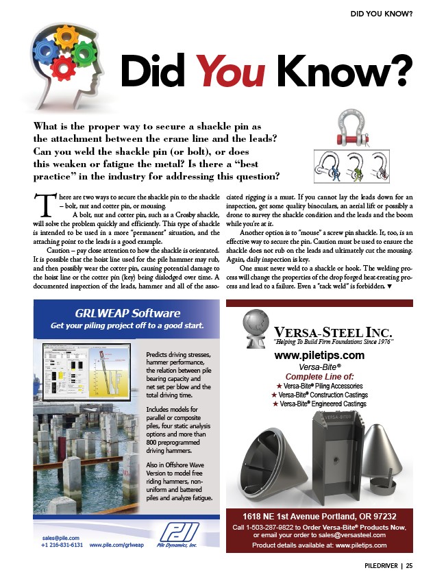 the hoist line or the cotter pin (key) being dislodged over time. A