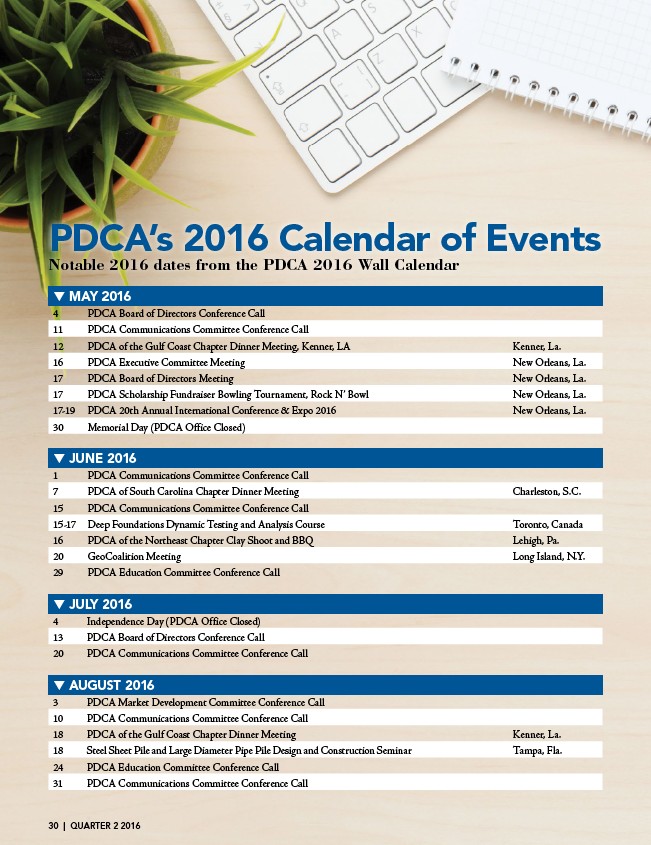 Notable 2016 dates from the PDCA 2016 Wall Calendar