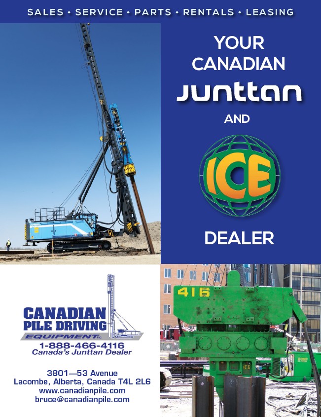 SALES • SERVIC E • PA RTS • RE NTALS • LEASING 3801—53 Avenue Lacombe, Alberta, Canada T4L 2L6 www.canadianpile.com bruce@canadianpile.com YOUR CANADIAN AND DEALER