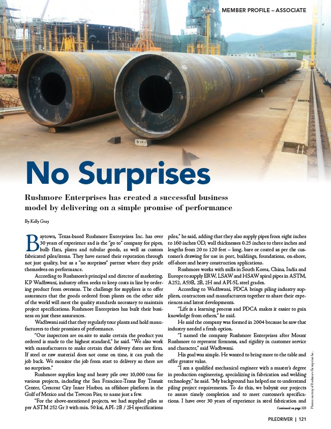 Rushmore supplies long and heavy pile over 10,000 tons for