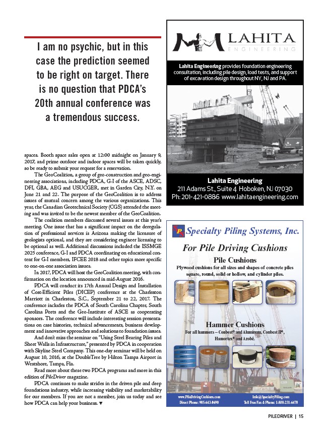 associations, including PDCA, G-I of the ASCE, ADSC,