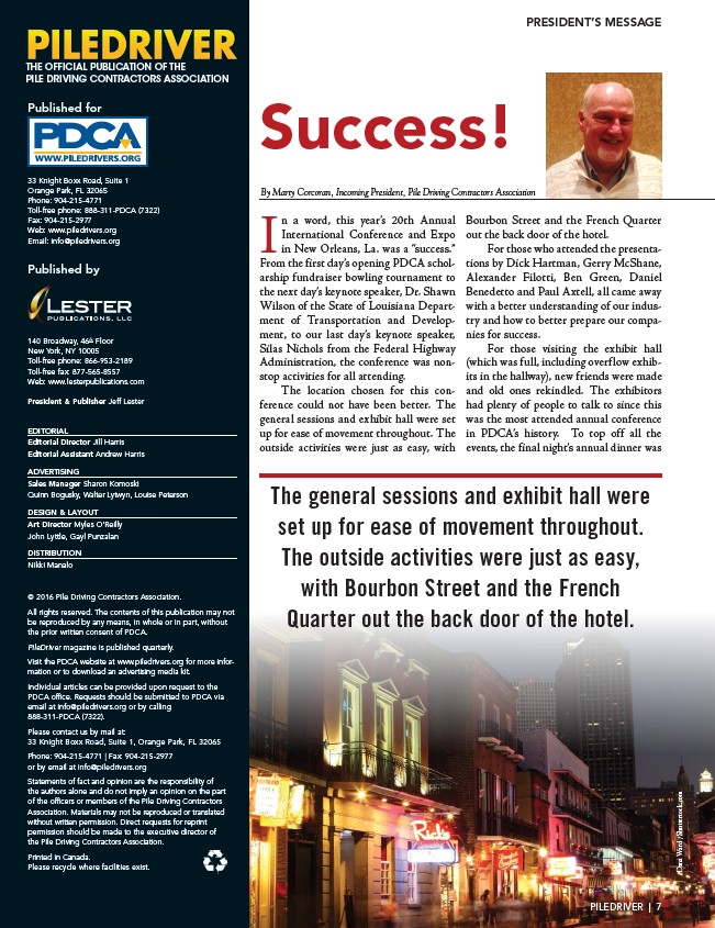By Marty Corcoran, Incoming President, Pile Driving Contractors Association