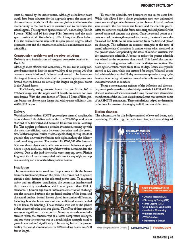 visual appeal. The approach spans consist of 78-inch-deep Florida