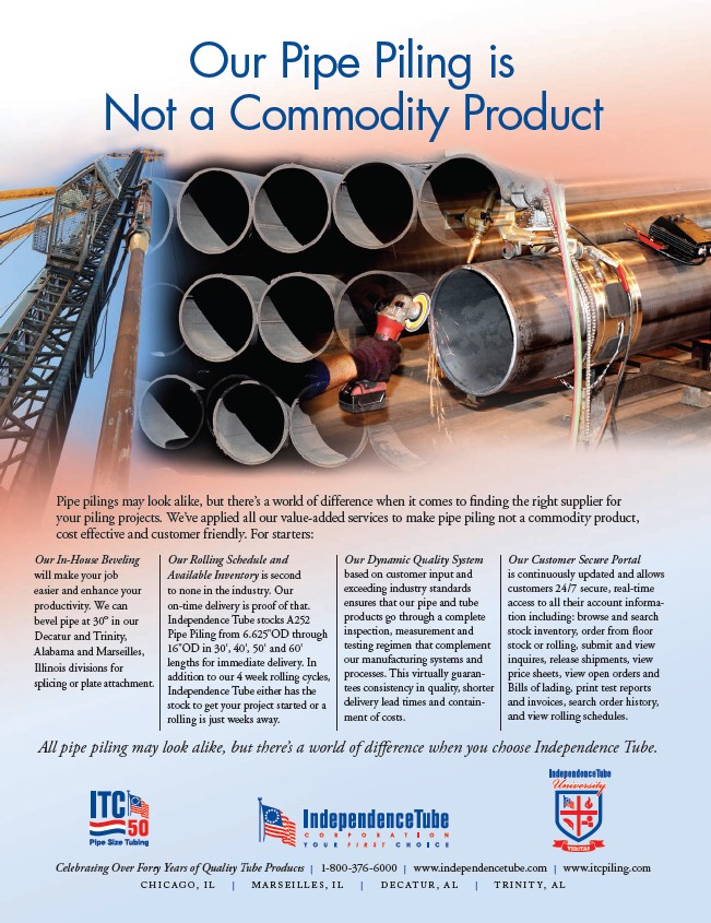 Celebrating Over Forty Years of Quality Tube Products | 1-800-376-6000 | www.independencetube.com | www.itcpiling.com