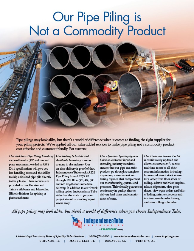 Celebrating Over Forty Years of Quality Tube Products | 1-800-376-6000 | www.independencetube.com | www.itcpiling.com