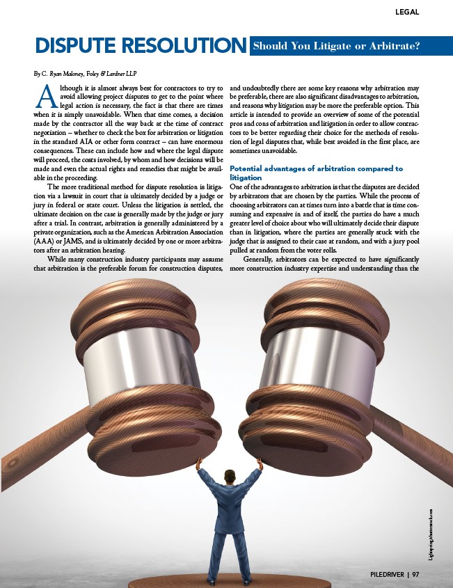 DISPUTE RESOLUTION Should You Litigate or Arbitrate?