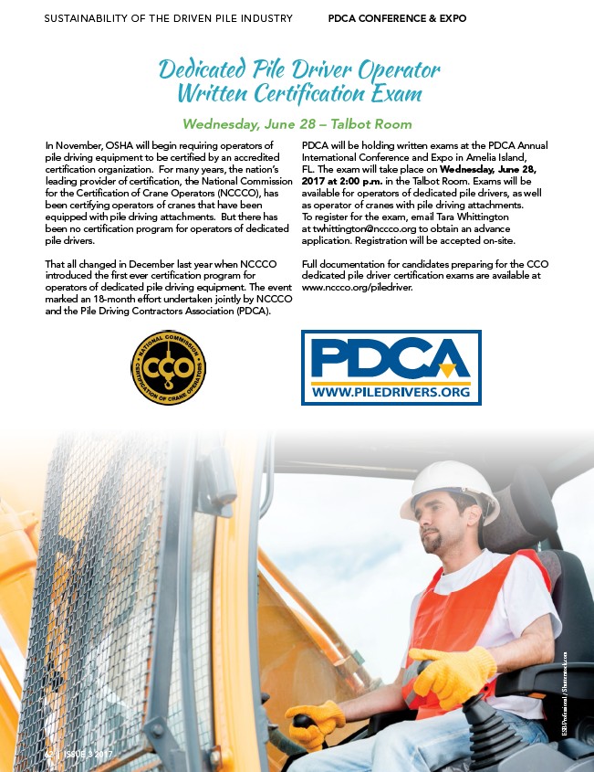 dedicated pile driver certification exams are available at