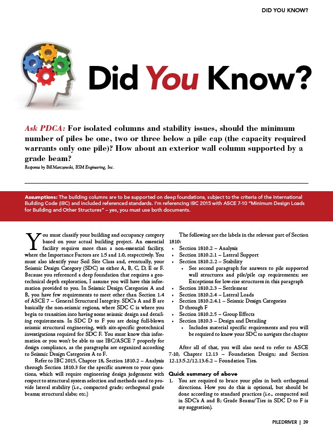 Assumptions: The building columns are to be supported on deep foundations, subject to the criteria of the International