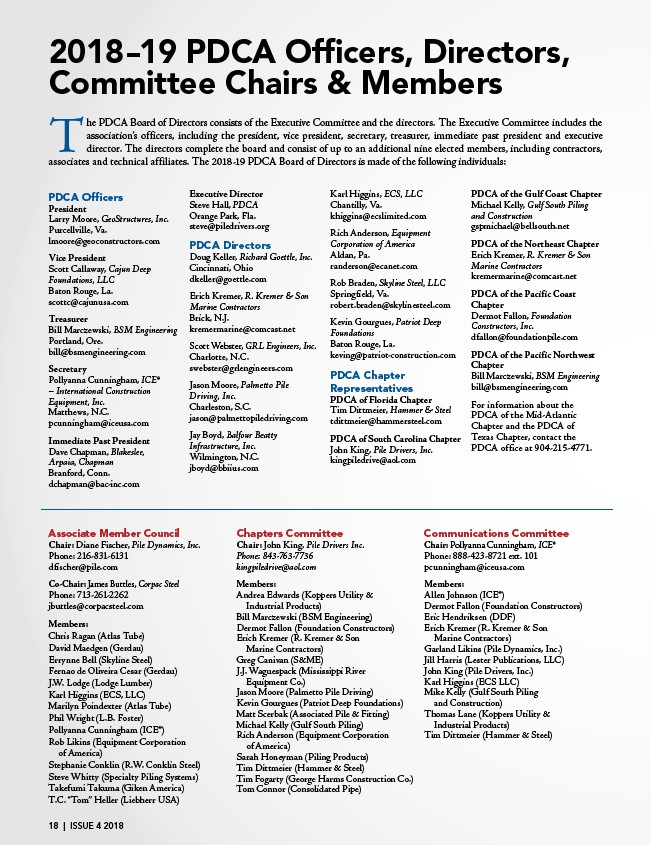 associates and technical affiliates. The 2018-19 PDCA Board of Directors is made of the following individuals: