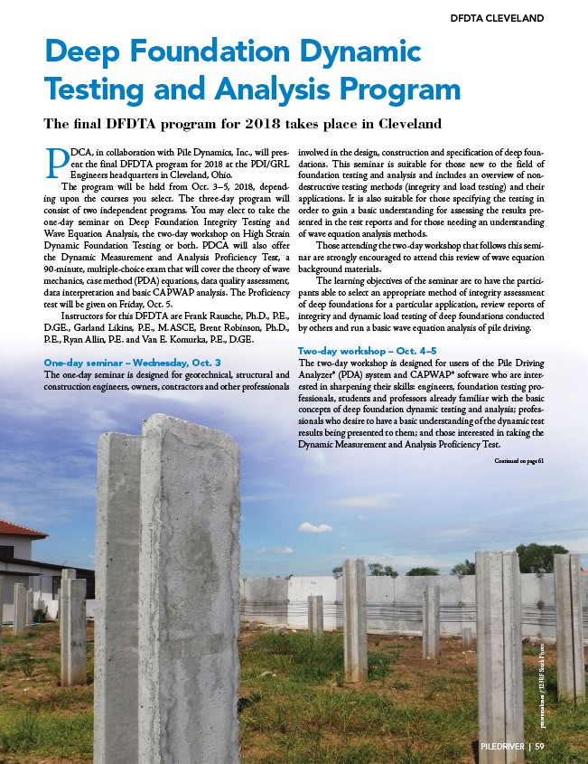 PDCA, in collaboration with Pile Dynamics, Inc., will present