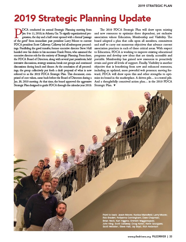 Strategic Plan designed to guide PDCA through the calendar year 2019.