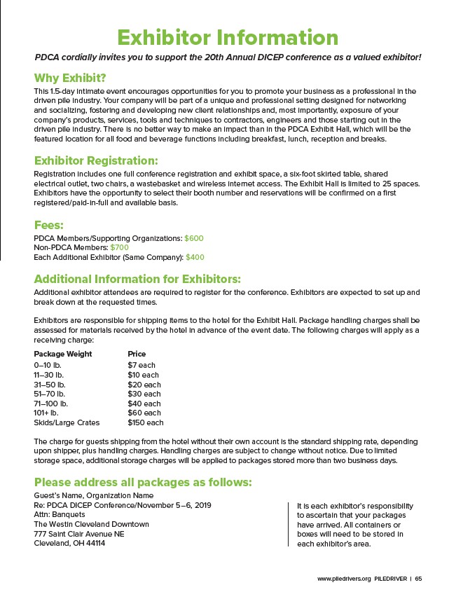 driven pile industry. There is no better way to make an impact than in the PDCA Exhibit Hall, which will be the