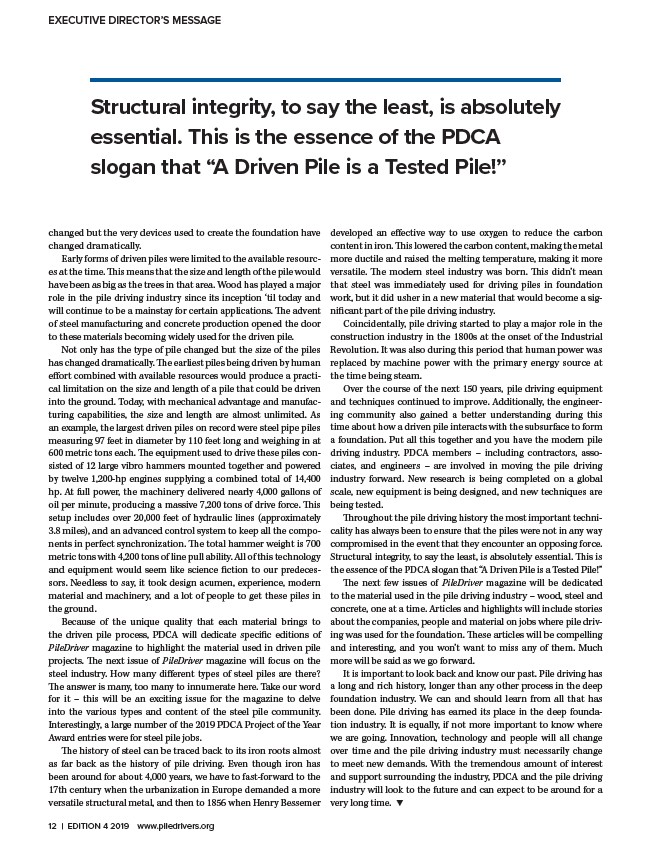 12 | EDITION 4 2019 www.piledrivers.org