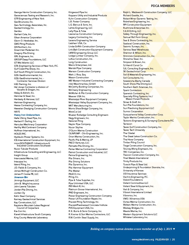 Bolding on company names denotes a new member as of July 1, 2019 t