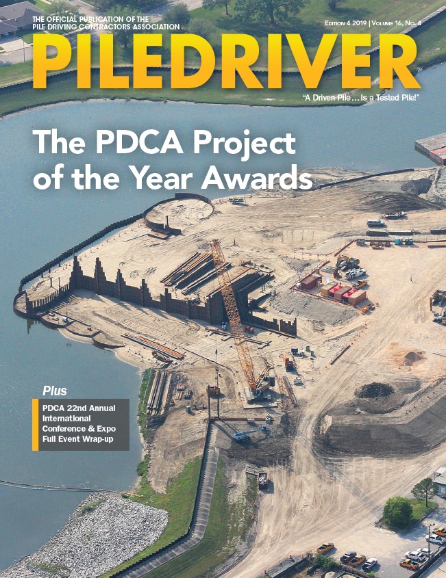 THE OFFICIAL PUBLICATION OF THE PILE DRIVING CONTRACTORS ASSOCIATION The PDCA Project of the Year Awards PDCA 22nd Annual International Conference & Expo Full Event Wrap-up EDITION 4 2019 | VOLUME 16, NO. 4 “A Driven Pile … Is a Tested Pile!” |Plus