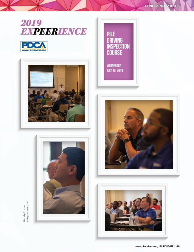 CONFERENCE PHOTOS Background: dr911/123RF Photos by CJ Nurse Pile Driving Inspection Course Wednesday, July 10, 2019 www.piledrivers.org PILEDRIVER | 49