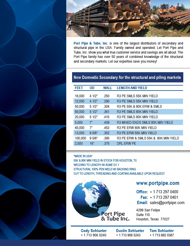 structural pipe in the USA. Family owned and operated. Let Port Pipe and