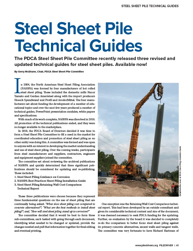 The PDCA Steel Sheet Pile Committee recently released three revised and