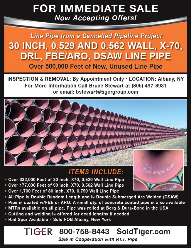 • Over 177,000 Feet of 30 inch, X70, 0.562 Wall Line Pipe