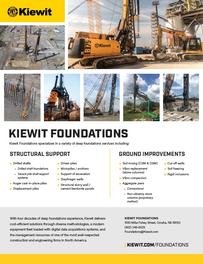 Kiewit Foundations specializes in a variety of deep foundations services including: