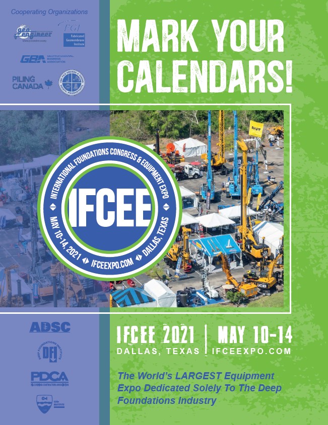 MARK YOUR CALENDARS! ifcee 2021 may 10-14 DALLAS, TEXAS IFCEEXPO.COM | The World’s LARGEST Equipment Expo Dedicated Solely To The Deep Foundations Industry Cooperating Organizations