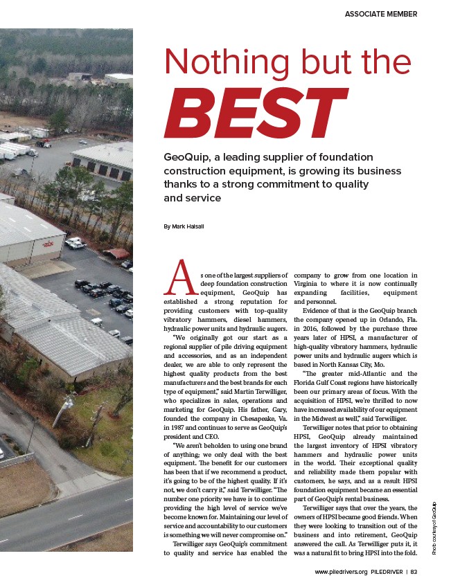 Nothing but the BEST GeoQuip, a leading supplier of foundation