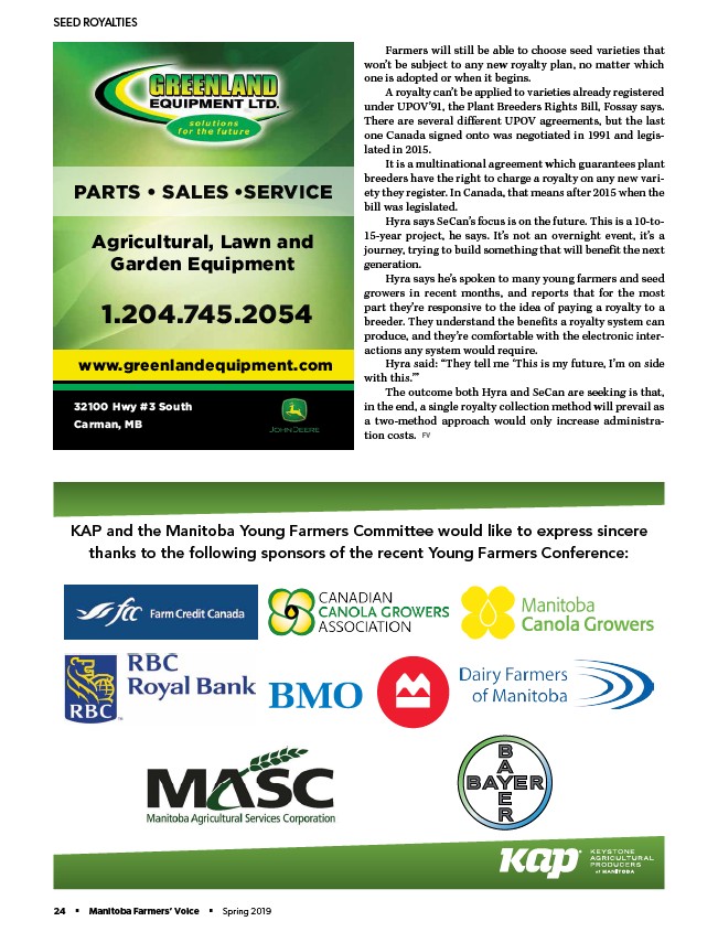 24 § Manitoba Farmers’ Voice § Spring 2019