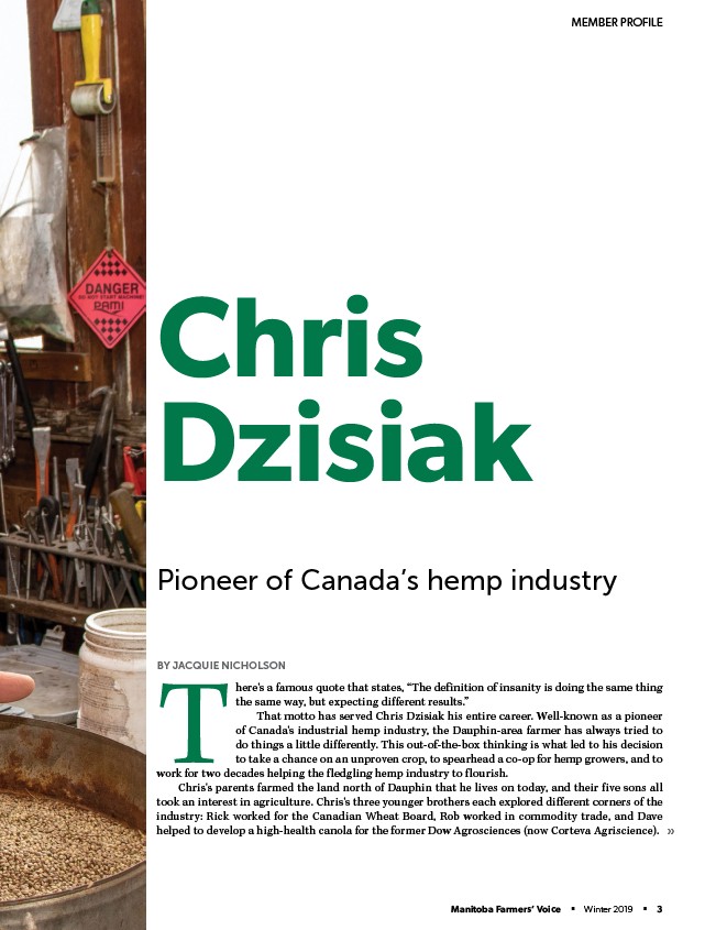 of Canada's industrial hemp industry, the Dauphin-area farmer has always tried to