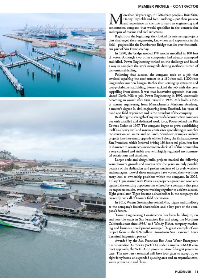 San Francisco, which involved driving 145-foot steel piles, four feet