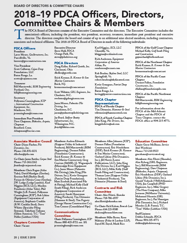 associates and technical affiliates. The 2018-19 PDCA Board of Directors is made of the following individuals: