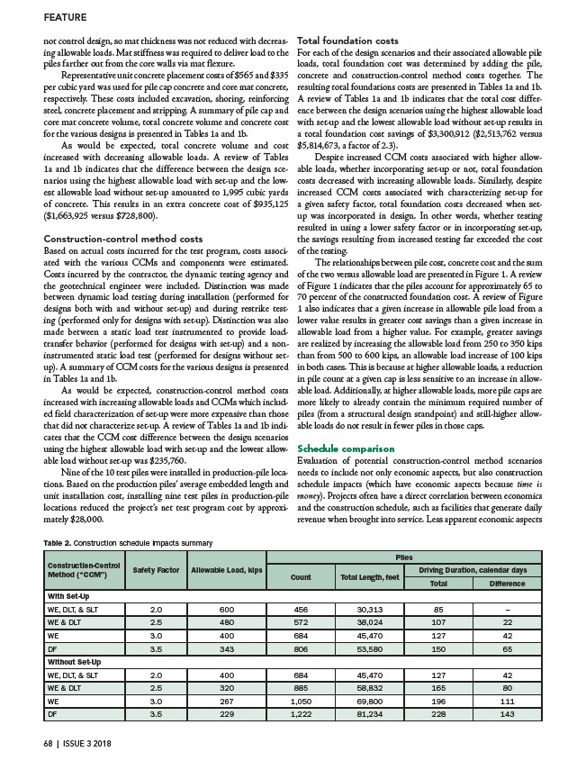 resulting total foundations costs are presented in Tables 1a and 1b.