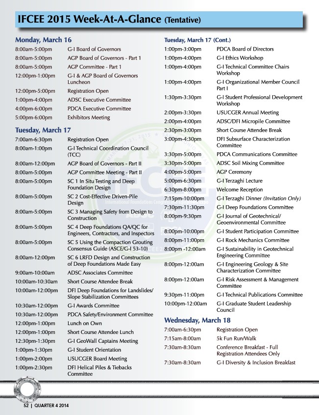 MA R C H 1 7 - 2 1 , 2 0 1 5 ★ S A N A N T O N I O , T E X AS International Foundations Congress and Equipment Expo w w w . I F C E E 2 0 1 5 . c o m 4 IFCEE 2015 CONFERENCE PREVIEW 52 | QUARTER 4 2014