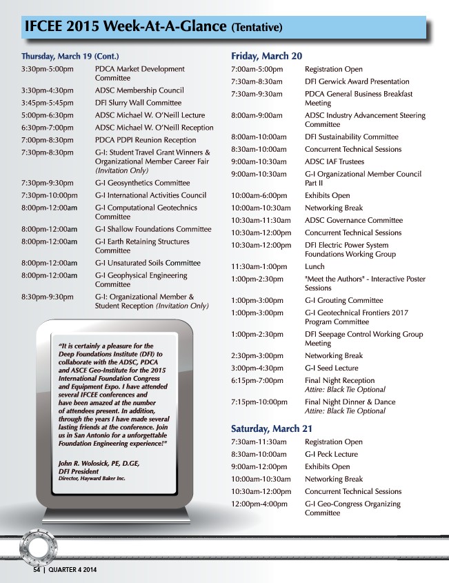 6 IFCEE 2015 CONFERENCE PREVIEW 54 | QUARTER 4 2014