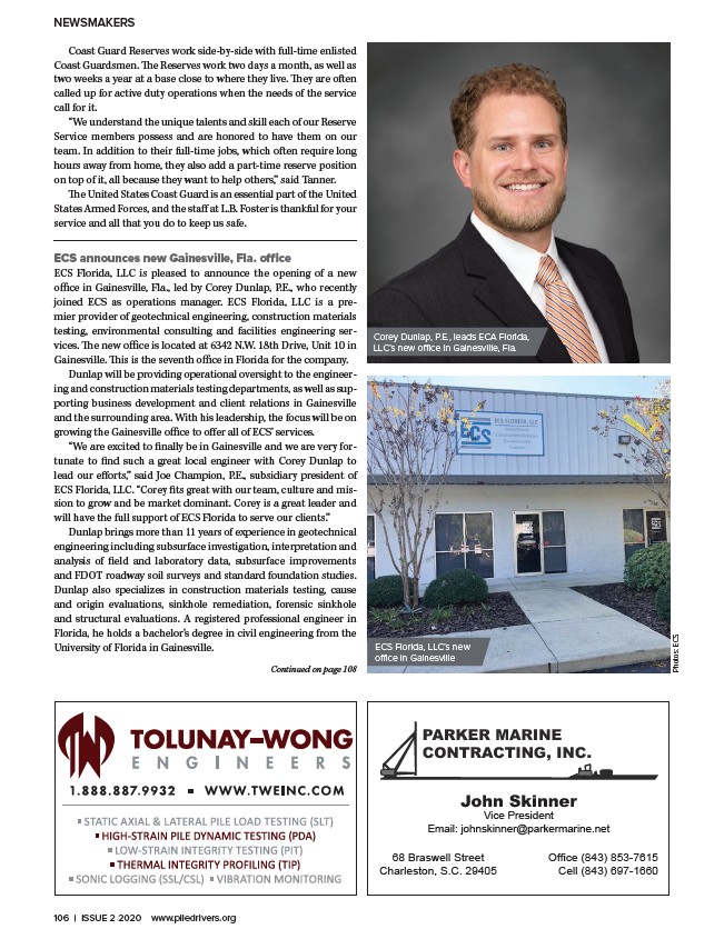 office in Gainesville, Fla., led by Corey Dunlap, P.E., who recently