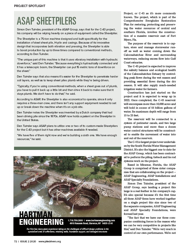 Den Tuinder says ASAP plans to utilize one or two of its custom-made Sheetpilers