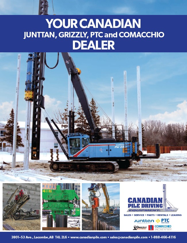 YOUR CANADIAN JUNTTAN, GRIZZLY, PTC and COMACCHIO SALES • SERVICE • PARTS • RENTALS • LEASING DEALER 3801–53 Ave., Lacombe,AB T4L 2L6 • www.canadianpile.com • sales@canadianpile.com • 1-888-466-4116
