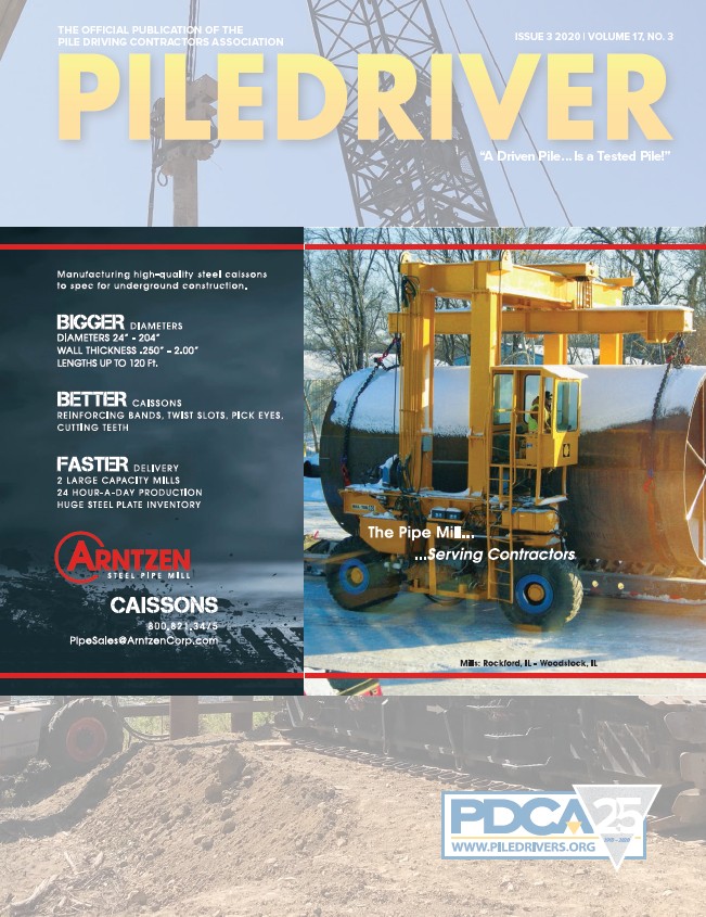 THE OFFICIAL PUBLICATION OF THE PILE DRIVING CONTRACTORS ASSOCIATION ISSUE 3 2020 | VOLUME 17, NO. 3 “A Driven Pile … Is a Tested Pile!” 1995 – 2020 PROJECT OF THE YEAR PDCA Members #DrivenToRespond to the COVID-19 Pandemic Awards The PDCA